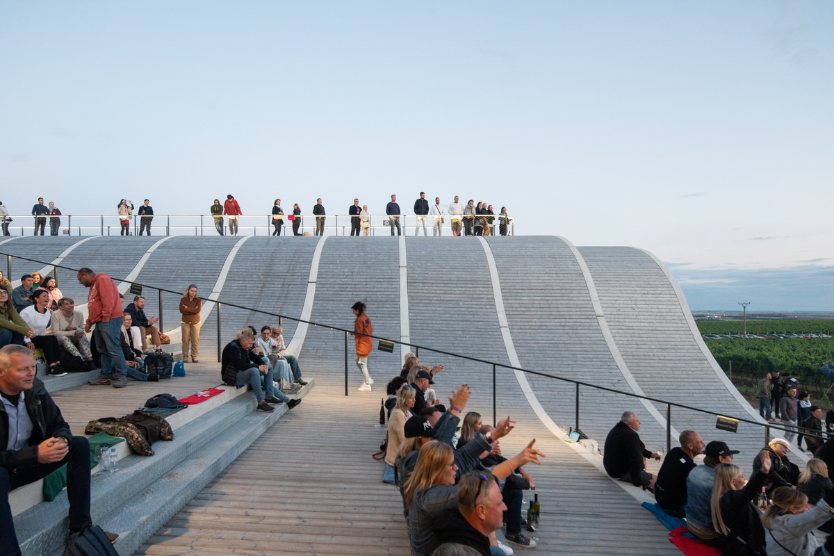 Překvapil mne i nedostatečně široký přesah vlny přes jižní fasádu. Pokud prší, a nemusí být ani velký vítr, nelze využít možnosti sedět v částečně chráněném exteriéru přímo v předpolí vinohradu. Velmi kladně je však potřeba hodnotit pozvání předního českého umělce Patrika Hábla, který klenbu návštěvnického centra výtvarně dotvořil reminiscencemi na terroir místních vinohradů. V rámci „udržitelnosti“ je třeba také ocenit využití lehce zpracovatelného betonu.