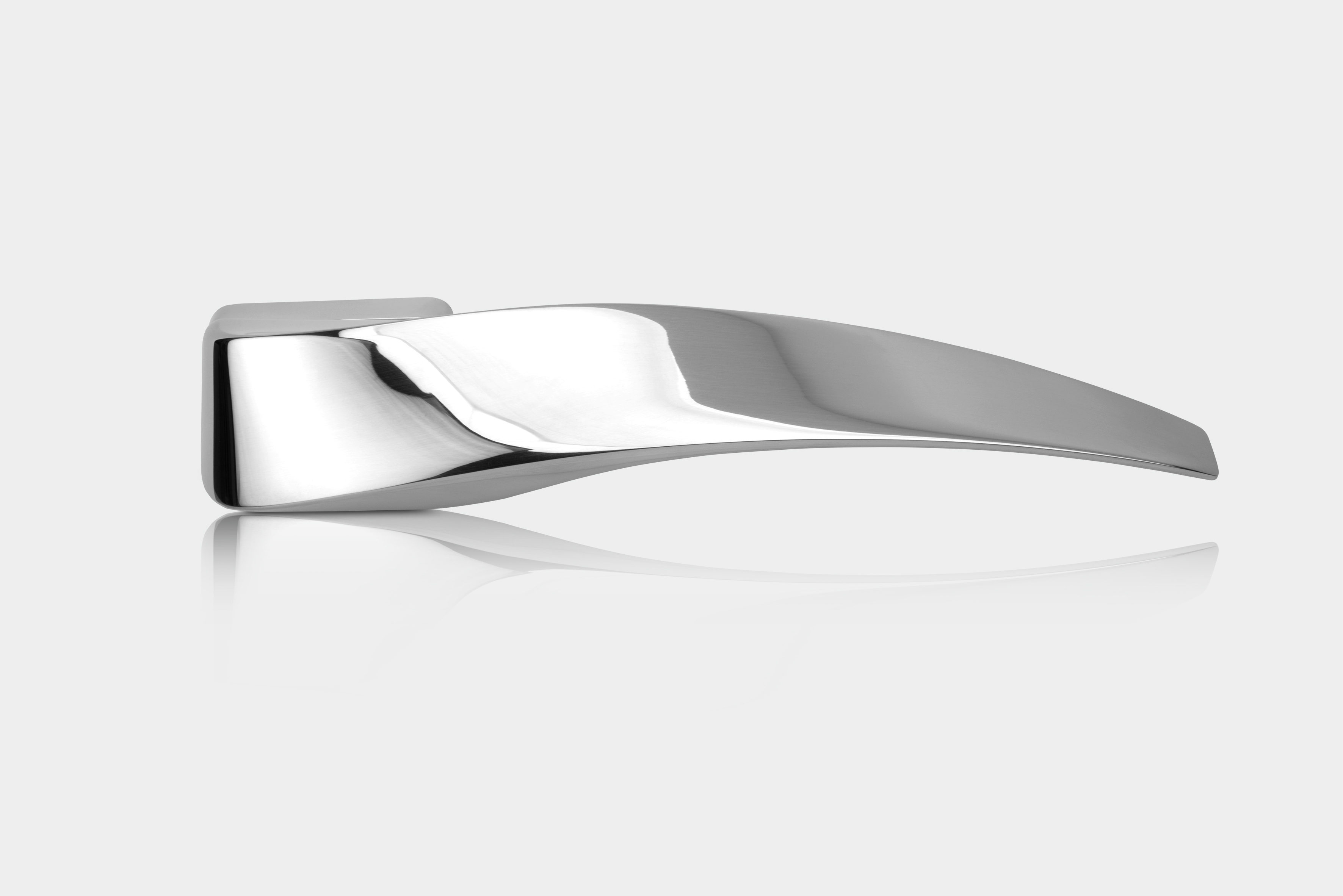 Díky nečekané hře ladných linií je tento interiérový detail z každého úhlu jedinečný, nedefinovatelný. A navíc jasně předkládá období svého vzniku, což bylo hlavním autorčiným záměrem. Jak sama popisuje: „Mojí představou bylo vyrobit takovou kliku, u níž půjde už na první pohled přečíst, že vznikla po roce 2000. Zároveň jsem chtěla, aby se na její výrobě podílely nejnovější počítačové programy a inovativní současné technologie.“ Po patnácti letech tak navázala na úspěšnou spolupráci s českou rodinnou manufakturou M&T, která se zaměřuje na progresivní technologické inovace. Díky modernímu zpracování designu kliky je doba jejího vzniku jednoznačně rozpoznatelná. A i přesto je vhodným architektonickým detailem, stylově vyváženým jak v historických, tak i současných interiérech.